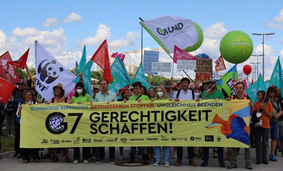 Hafta sonunda Münih'te binlerce kişi G7 ülkelerinin yoksulluk, gelir adaletsizliği, gıda ve iklim krizi politikalarını protesto etti.