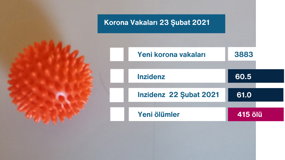 Yeni Koronavirüs enfeksiyonlarının sayısındaki durgunluk hafta başında da devam etti. Robert Koch Enstitüsü 3883 yeni vaka...