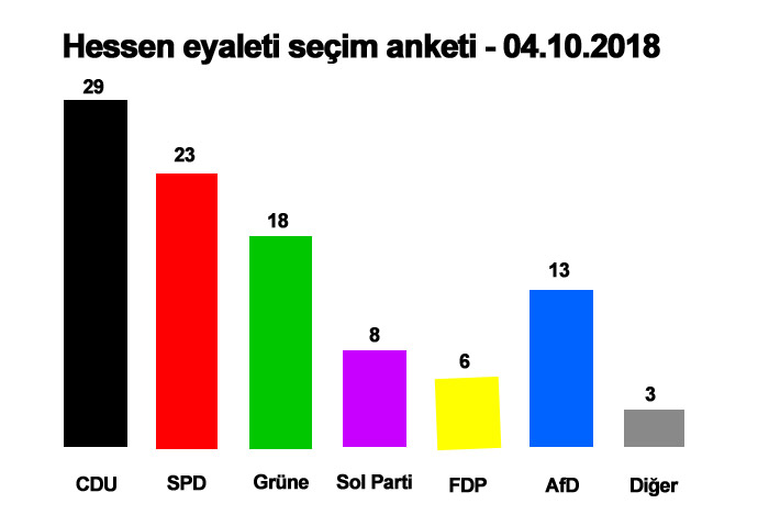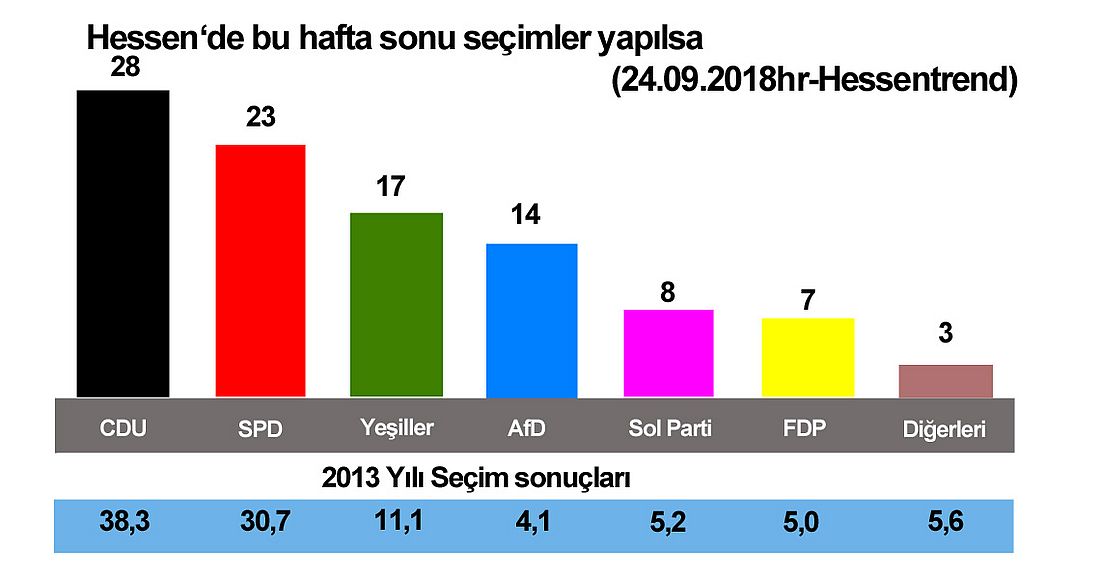 Seçimlere beş hafta kala Hessen’deki mutlak çoğunluğu kaybeden CDU/Yeşiller koalisyonu yüzde 45’e düştü....