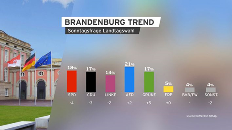 Eyalet parlamentosu seçimlerine 80 gün kala yapılan BrandenburgTrend anketine göre ırkçı...
